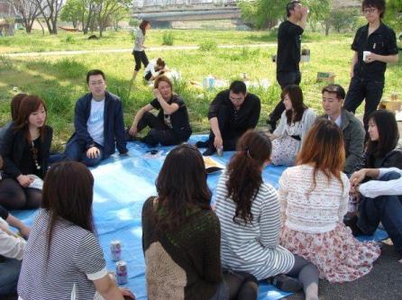 準備好了肉串,大家來到了淀川河邊開始進行活動的第二項——烤肉活動。借著秀麗的景色,大家友善的坐在了一起。通過彼此的初步了解,大家已然也沒有了陌生的隔閡。在陣陣的烤肉香氣中,大家也興致盎然的介紹自己、展示自己。頓時將現場的氣氛活躍到了高潮。陣陣歡聲笑語也從淀川河邊傳來。那是許久未有過的輕松的快樂。彼此之間的友誼,也在活動中變得更加的濃厚。