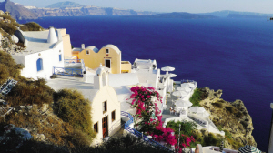 說到圣托里尼島,眼前自然便浮現出迷人的藍白二色。