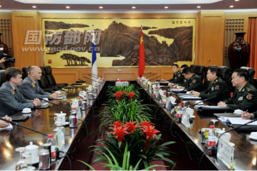 10月22日上午,中國人民解放軍副總參謀長戚建國中將在八一大樓與來華進行正式友好訪問的芬蘭國防部常務秘書阿托·雷蒂中將舉行了會談。 李曉偉攝