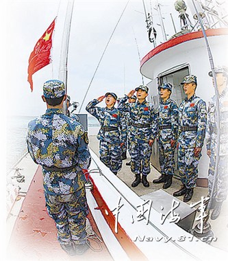 雖然整個(gè)緊急情況處置只用了10多分鐘,可在南沙炙熱陽(yáng)光的照射下,皮膚黝黑的官兵們?cè)缫押沽鳑驯场?/p>