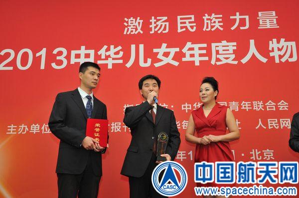 1月19日,由中華兒女報(bào)刊社、新華每日電訊社、人民網(wǎng)、新華網(wǎng)、中國青年網(wǎng)等聯(lián)合主辦的“激揚(yáng)民族力量——2013中華兒女年度人物”發(fā)布儀式在北京舉行,中國航天科技集團(tuán)公司嫦娥三號青年團(tuán)隊(duì)榮獲年度人物榮譽(yù)稱號。第十屆全國政協(xié)副主席李蒙,全國人大常委會常委、教科文衛(wèi)委員會主任委員柳斌杰等出席發(fā)布儀式。