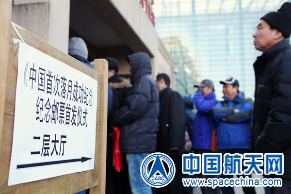 時間跨入2014年的第一天,早上7點,天剛蒙蒙亮,北京天文館還未開門,就已經(jīng)有上百人自發(fā)地在門前排起了長隊,這些集郵愛好者正等待著購買《中國首次落月成功紀念》郵票和首日封,并加蓋“月亮郵局”紀念郵戳,將“第一落”的喜悅分享到五湖四海。