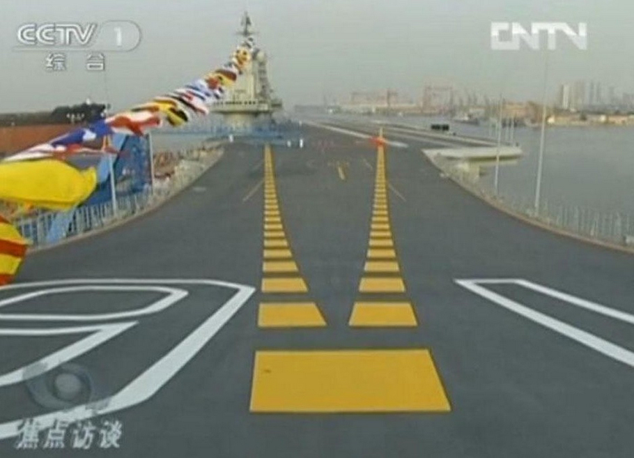 中國航母遼寧艦機庫內(nèi)出現(xiàn)“艦載機”