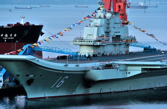 “遼寧艦”節(jié)日期間霓虹燈閃亮裝點(diǎn)海灣