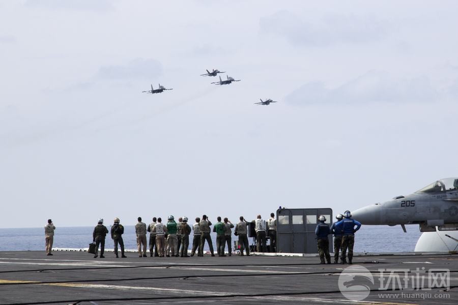 多架蘇-30戰機飛過美軍航母上空