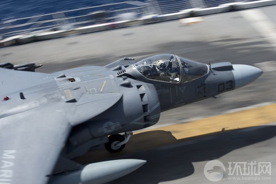 在此次美菲聯合登陸演習中,一架AV-8B鷂式戰斗機從好人理查德號兩棲攻擊艦上起飛。