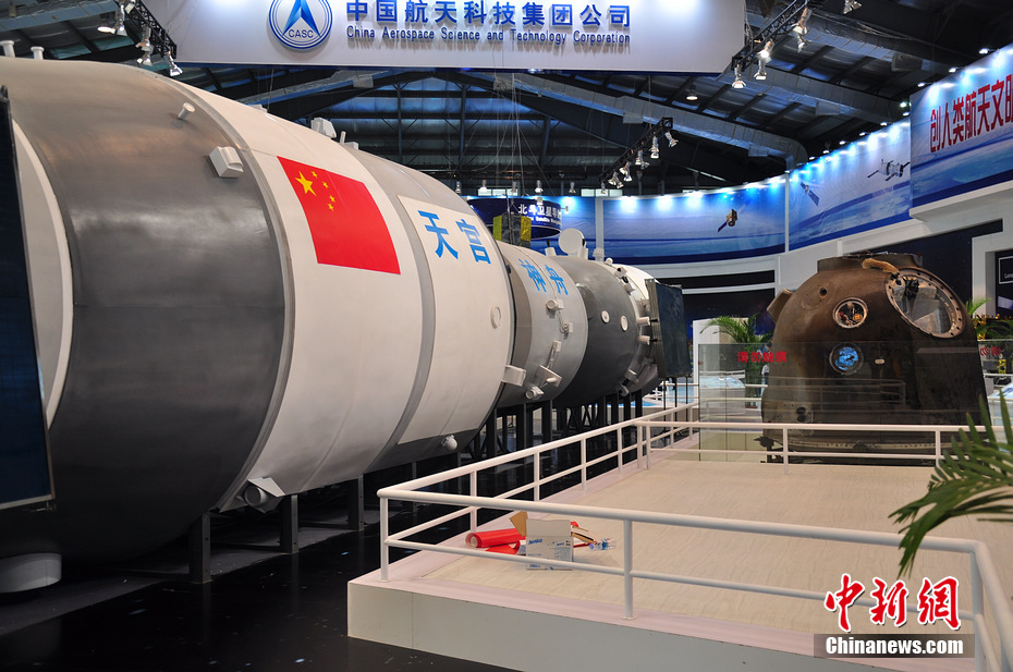 天宮一號空間站與神九飛船對接模型。陳海峰 攝