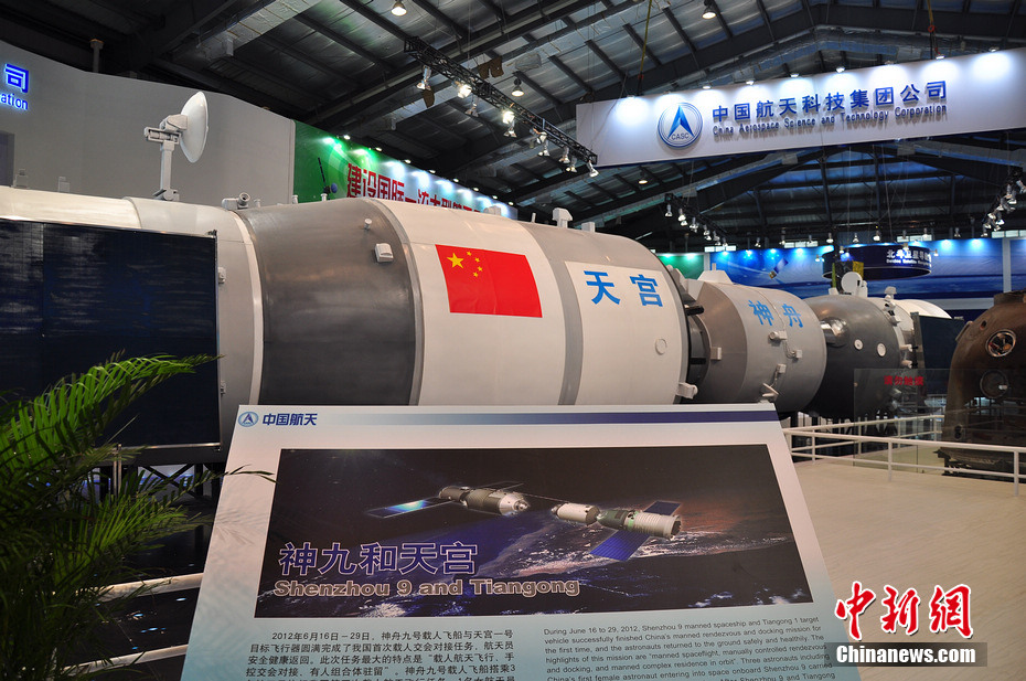 天宮一號空間站與神九飛船對接模型。陳海峰 攝