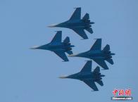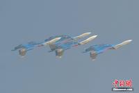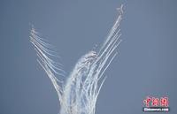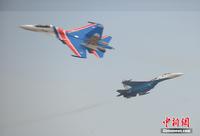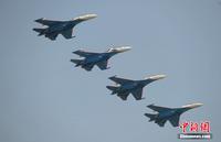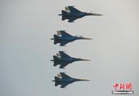 中新網(wǎng)珠海11月12日電(陳海峰)12日下午兩點(diǎn)整,俄羅斯勇士飛行表演隊(duì)5架表演機(jī)準(zhǔn)時(shí)啟動(dòng)進(jìn)行飛行表演,展示了“加力盤旋”、“躍升半滾倒轉(zhuǎn)”、“向上開花”、“雙機(jī)對(duì)沖”等精彩動(dòng)作,為觀眾提供了一場(chǎng)視覺盛宴,體現(xiàn)了蘇27優(yōu)異的機(jī)動(dòng)性能。
