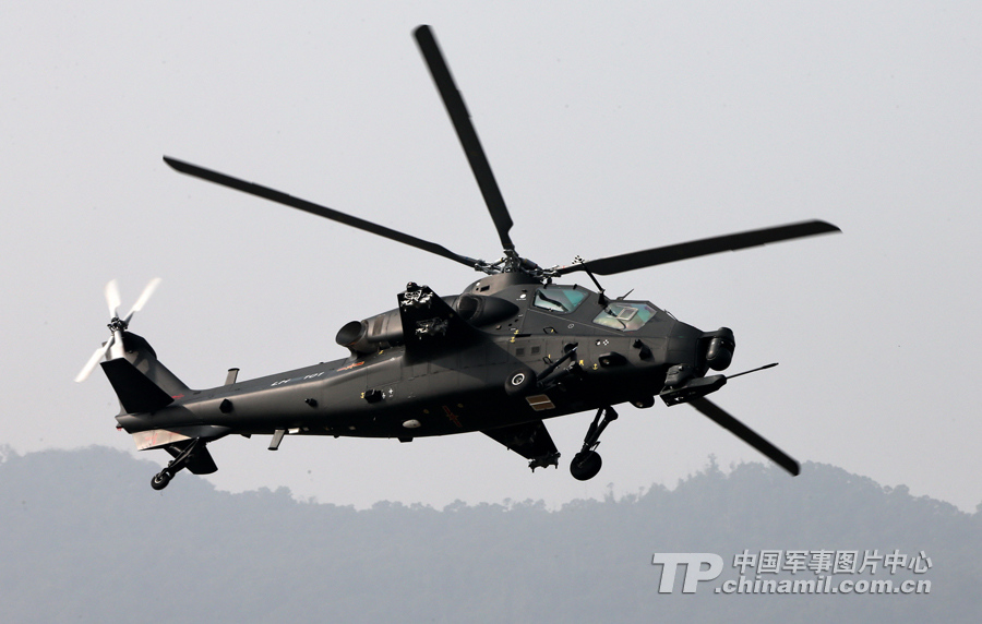 11月13日,我國自主研制生產的武直-10武裝直升機亮相在珠海舉行的第九屆中國國際航空航天博覽會,在飛行表演中展示了這款直升機的優良性能。記者喬天富 攝(來源:中國軍網)