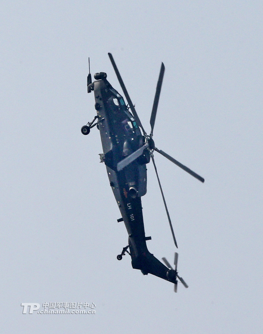 11月13日,我國(guó)自主研制生產(chǎn)的武直-10武裝直升機(jī)亮相在珠海舉行的第九屆中國(guó)國(guó)際航空航天博覽會(huì),飛行表演展示了這款直升機(jī)的優(yōu)良性能。圖為武直-10垂直躍升。記者喬天富攝