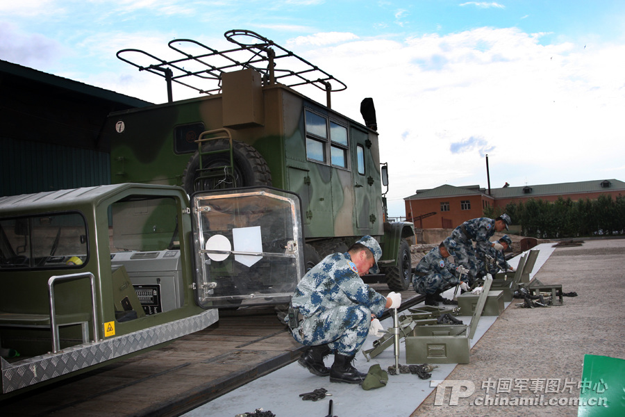 7月27日,參加中俄聯演的空軍戰斗群官兵在滿洲里火車站正從中方專列上往下卸載裝備。 曹占禮 攝