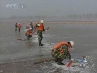 報(bào)道說(shuō),參加此次冰凌爆破演習(xí)的爆破隊(duì)員在黃河厚厚的冰上反應(yīng)迅速、技術(shù)運(yùn)用熟練。