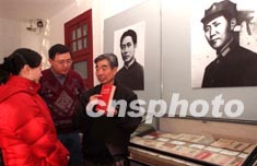 為紀念毛澤東誕辰109周年,收藏家奚景鵬先生《毛澤東著作早期版本收藏展》一月正在北京展出。674冊毛澤東著作早期版本,都是建國前出版的毛澤東選集、文集、著作單行本專著著作匯編本、等,圖為收藏家奚景鵬先生(右一)正在為參觀者講解他收藏的毛澤東著作各類版本。作者:張勤