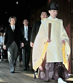 日本首相小泉純一郎14日下午參拜了位于東京九段北的供奉有甲級戰(zhàn)犯牌位的靖國神社。