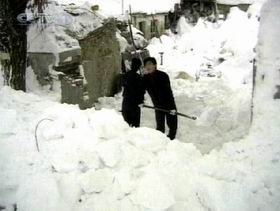 搶險隊雪阻現場清理積雪(中央電視臺畫面)