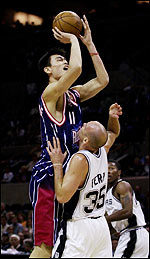 中新網1月24日電 北京時間今天凌晨,NBA公布了2003年全明星東西部的首發(fā)陣容,以新秀狀元身份參加NBA比賽的中國中鋒“小巨人”姚明,在投票中力壓“大鯊魚”奧尼爾,成為西部聯(lián)盟的首發(fā)中鋒。