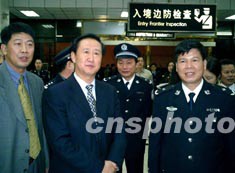 自元月二十七日零時起,深圳皇崗與香港落馬洲口岸二十四小時旅客通關正式運作,深圳市常務副市長李德成(左二)午夜零時親臨皇崗口岸查看通關情況。作者:陳文