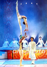 廣州軍區(qū)的掌上芭蕾《化蝶》也是晚會歌舞類節(jié)目的亮點,這個節(jié)目早在湖南金鷹節(jié)就曾亮相過,曾經獲得第二十六屆蒙特卡羅金小丑芭蕾舞金獎,不過此番被央視用《梁祝》做包裝,還是讓現(xiàn)場觀眾嘆為觀止。兩個舞蹈演員在觀眾面前表演了芭蕾絕技,最讓人不可思議的是女演員居然把身體的平衡點放在男演員的肩膀甚至頭頂上。今年歌舞演員新面孔多于往年,特別是中央電視臺大獎賽上,獲得優(yōu)異成績的這些演員,將出現(xiàn)在今年春節(jié)晚會當中。