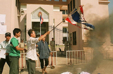 相關報道:駐柬使館建筑遭焚燒 泰國總理警告要派軍隊前往 (2003-01-29 22:42:39)