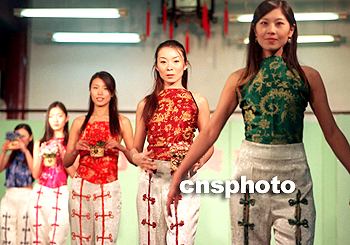 圖:模特在北京春節廟會上展示"中國結"時裝