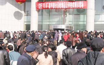 中新網2月21日電 昨日下午,沈陽各界人士紛紛涌向“慕馬”案件沒收物品公開拍賣展示現場——金劍大廈,由于展示現場空間有限,加上事先沒有預料到有上萬觀眾前來觀看,所以部分觀眾被“拒之門外”。