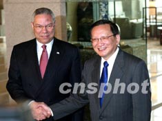 鮑威爾說,美中關系近一年多來取得很大進展,雙方在高層對話、人員交往、反恐、經貿等領域進行了很好的合作。切尼副總統期待著不久訪問中國。美方希望進一步加強與中國的合作關系,美方意識到臺灣問題對中國的重要性,美方將堅持一個中國的政策,遵守美中三個聯合公報,不支持任何搞“臺灣獨立”的活動。
