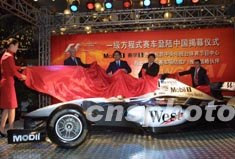 參加2003年世界F1比賽的麥克拉倫·梅賽德斯車隊(duì)的新型賽車,24日在北京揭幕亮相,隨著2004年世界F1比賽進(jìn)入中國(guó)上海國(guó)際賽車場(chǎng),國(guó)際各個(gè)大牌車隊(duì)都將在中國(guó)進(jìn)行展示。作者:趙振清