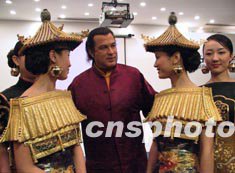 癡迷東方文化的好萊塢動作影星史蒂文·席格,六日在北京觀看中華五朝服飾藝術表演,并對造型奇特的服飾表示極大興趣。他已經九次來華,和以往一樣此次來中國仍然離不開中美文化藝術交流的工作。作者:王麗南
