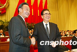——中共中央政治局常委吳邦國(guó)當(dāng)選新一屆全國(guó)人大常委會(huì)委員長(zhǎng)。