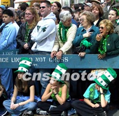 紐約的愛爾蘭人十七日在曼哈頓五大道舉行慶祝圣帕特里克節大游行,用被愛爾蘭人視為吉祥色的綠色打扮自己,紀念守護神圣帕特里克。作者:紐約