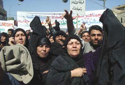 在戰爭中死去親人們的母親們也上街支持薩達姆。(春風)
