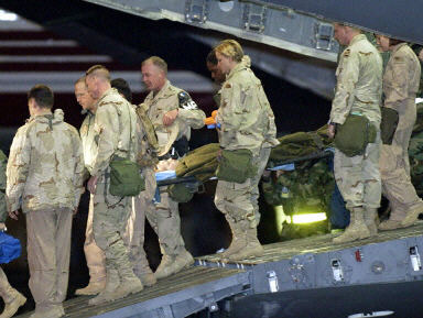 3日,圖為19歲的美軍女士兵杰西卡·林奇乘美軍用運輸機到達美軍駐德國的拉姆斯汀基地。