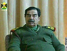 伊拉克電視臺星期四播放薩達姆畫面的同時,主持人在宣讀一份聲稱是來自這位伊拉克領導人的聲明。