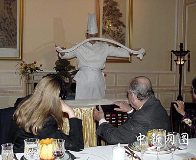 中新網巴黎4月13日電(記者蔚中)“哇,這簡直是天使的頭發(fā)!”當親眼目睹北京面點師如變魔術似地將一公斤面頃刻間變成了十余公里長、細可穿針的龍須面時,法國前總理巴爾伉儷情不自禁地贊嘆道。