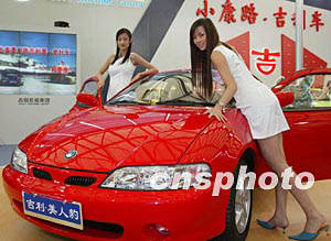 中國吉利集團生產的雙門跑車二十一日亮相上海第十屆國際汽車展覽會,十分搶眼。作者:趙振清