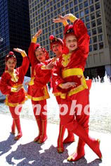 美國芝加哥五月舉辦亞裔文化節系列活動,來自不同國家的學生21日在市中心廣場演出亞洲歌舞,其中芝市公立學校的女童們一身戎裝,表演由中國教師金秋月編導的舞蹈“花木蘭”。中新社記者:王瑤