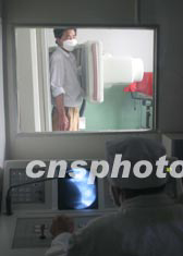 五月二十八日,一位外地青年在北京市平安醫院放射科接受胸透檢查。根據北京市的有關規定:近期來北京務工經商的外地人員須經過體溫、肝功、胸透及常規檢測合格,領取《健康證》后方可就業。中新社記者:史利