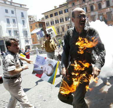圖為一名在羅馬的法國使館門前自焚的男性。
