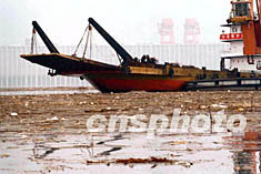 三峽庫區蓄水第九天 8日首次清理壩前漂浮物 (2003-06-09 15:47:46)