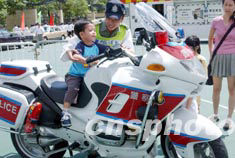 2003年6月22日,香港警務(wù)處在維多利亞公園舉行的“同心攜手畫出彩虹”嘉年華活動上,展示警用電單車。中新社記者 錢興強