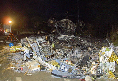 飛機墜毀后斷成兩截,機身隨即起火。機上53歲的飛行員死亡,另一名機師及兩名乘客受輕傷。