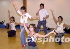 歌星陳慧嫻6月25日在香港為其復出的個唱與一眾舞蹈員進行舞蹈排練,舞指(男)為她排練舞步,陳慧嫻將于7月4、5日在紅館舉行兩場演唱會。 中新社記者 鄧慶樂