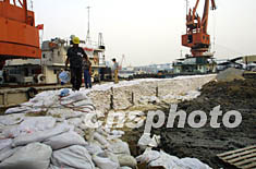 傍晚五點(diǎn)半左右,這里的武警官兵開(kāi)始又一輪搬運(yùn)沙袋,在臨時(shí)沙堤內(nèi)側(cè)再筑起一道防線,以加固臨時(shí)沙堤。現(xiàn)場(chǎng)人員稱,目前有關(guān)施工人員和武警官兵都在與潮汐搶時(shí)間,要在黃浦江又一次漲潮之前,完成堤岸加固,以控制險(xiǎn)情進(jìn)一步發(fā)展。