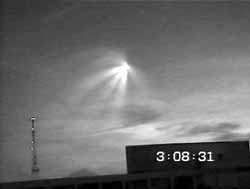 不過(guò),不管怎么說(shuō),俄軍方要求天文愛(ài)好者把拍到的錄像給他們看看,結(jié)果斷定確實(shí)是二級(jí)火箭分離時(shí)的情景。至此,在全世界都鬧得沸沸揚(yáng)揚(yáng)的鄂木斯克城UFO之謎真像大白。圖為當(dāng)時(shí)拍的奇異情景(徐冰川/聞新芳)