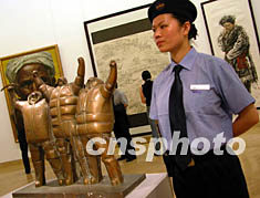 中國美術館建館四十周年慶典暨改造裝修工程竣工儀式二十三日舉行,展現百年中國美術發展歷程的館藏精品在裝飾一新的展廳中,呈現迷人風采。中新社記者:張勤