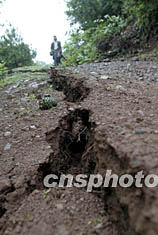 二十三日云南省大姚縣依然余震不斷,地震使山體出現裂縫。中新社記者:毛建軍