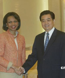 胡錦濤會見賴斯 強調訪問有助增進理解促進合作