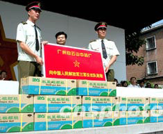 圖:廣東為解放軍三軍儀仗隊贈送抗高溫防暑藥