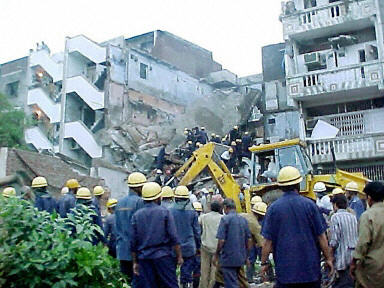 印度煤氣爆炸引起三層樓倒塌 至少造成14人死亡 (2003-08-03 18:32:16)